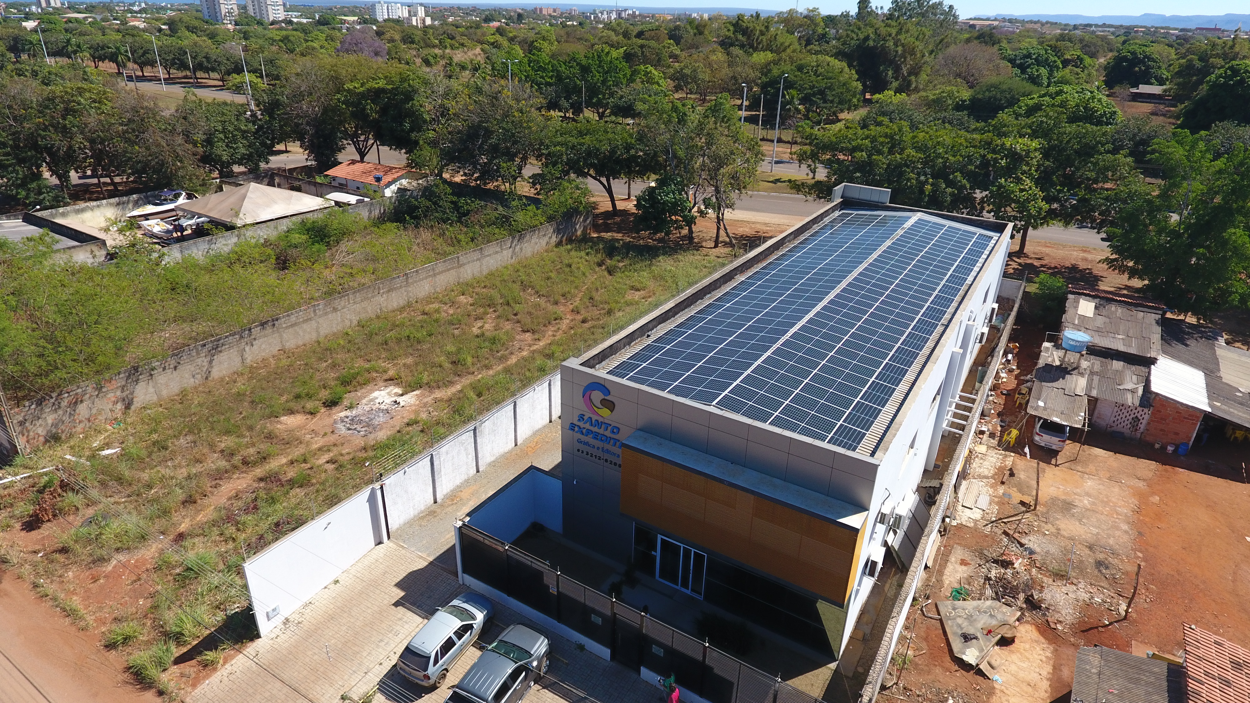 Gráfica Santo Expedito - Sistema fotovoltaico de 57,6kWp com 160 módulos de energia solar, com geração média mensal de 7.000 kWh